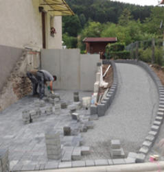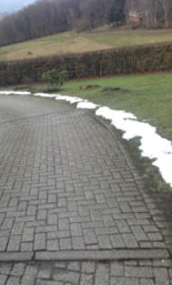 Pflasterverlegung Herstellung von privaten Hofeinfahrten mit Pflaster im vergleich Vorher / Nachher Auch private Wege mit Pflaster für einen Barrierefreien Zugang zum Hausstellen wir gerne für Sie her.